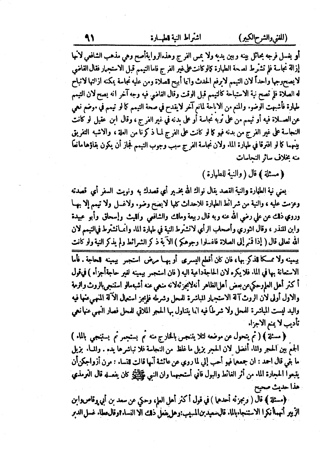 والماء يزيل ما بقي قال أحمد: إن جمعهما فهو أحب إلي لما روي عن عائشة أنها قالت للنساء: مرن أزواجكن أن يتبعوا الحجارة الماء من أثر الغائط والبول فإني أستحبهما وأن النبي صلى الله عليه وسلم كان يفعله قال الترمذي هذا حديث صحيح (مسألة) قال (ويجزئه أحدهما) في قول أكثر أهل العلم، وحكي عن سعد بن أبي وقاص وابن الزبير أنهما أنكرا الاستنجاء بالماء قال سعيد بن المسيب: وهل يفعل ذلك إلا النساء؟ وقال عطاء غسل الدبر