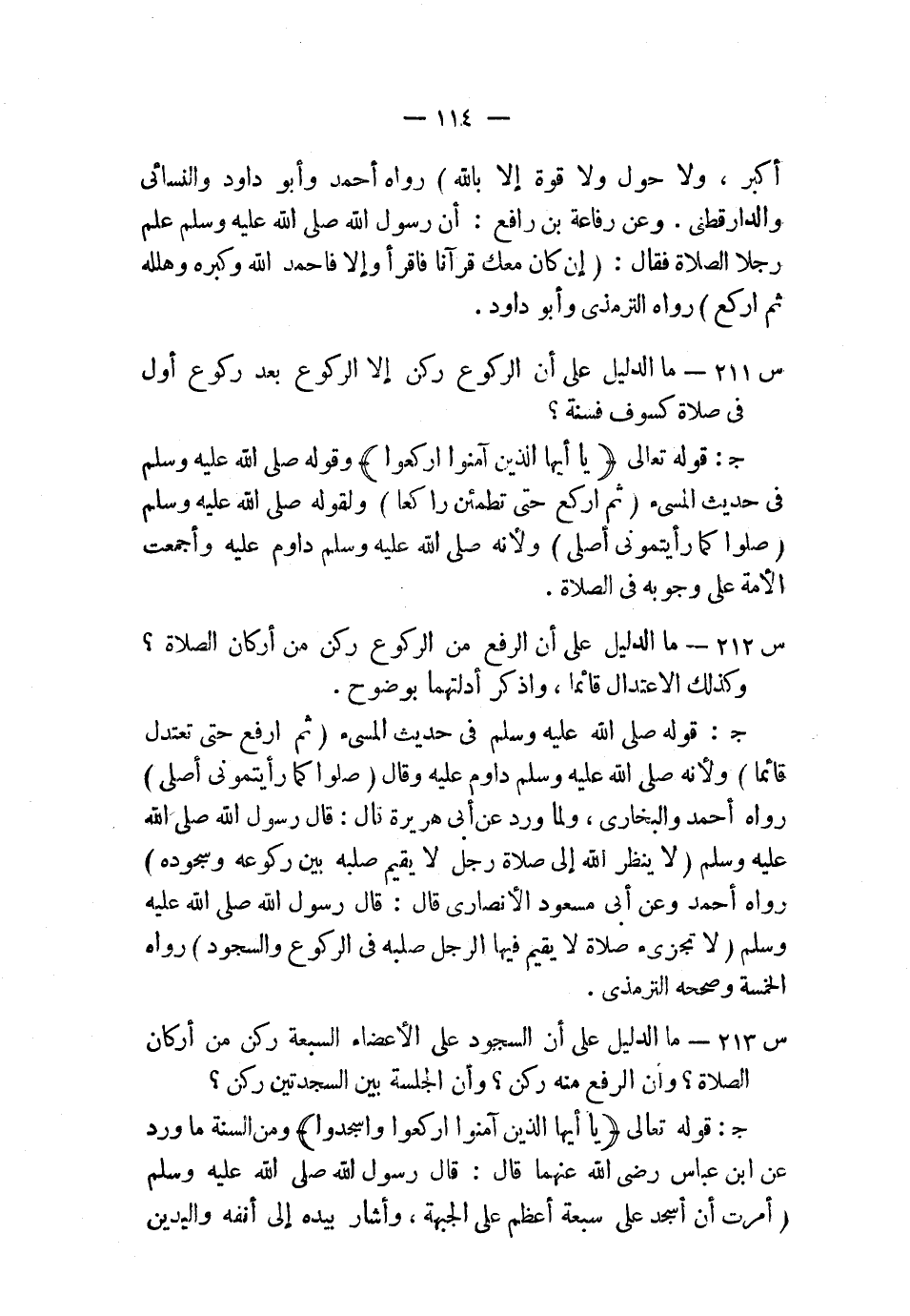 س213: ما الدليل على أن السجود على الأعضاء السبعة ركن من أركان الصلاة؟ وأن الرفع منه ركن؟ وأن الجلسة بين السجدتين ركن؟