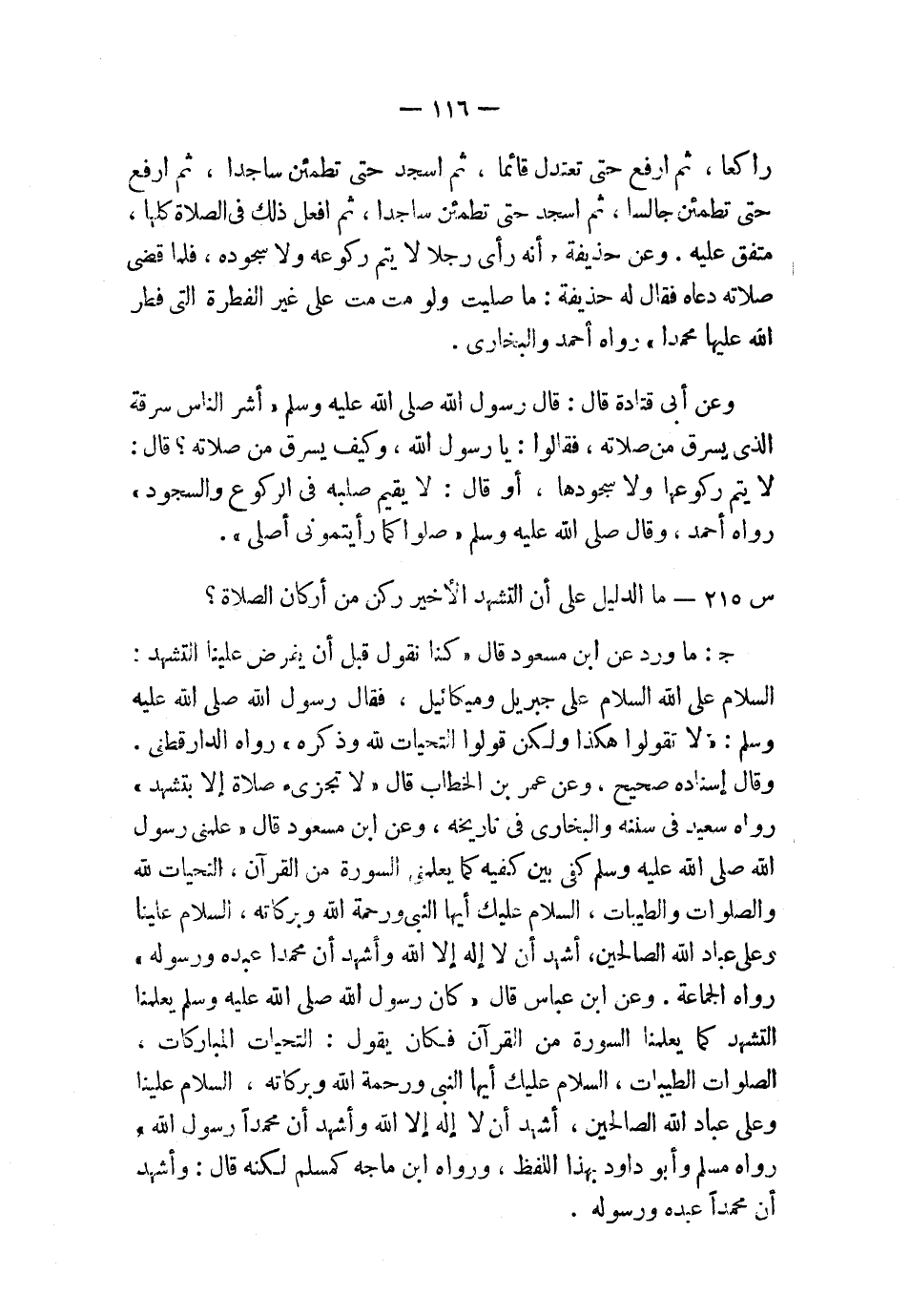 س215: ما الدليل على أن التشهد الأخير ركن من أركان الصلاة؟