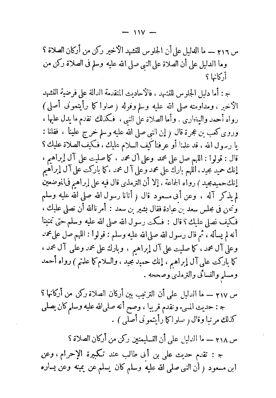 س216: ما الدليل على أن الجلوس للتشهد الأخير ركن من أركان الصلاة؟ وما الدليل على أن الصلاة على النبي صلى الله عليه وسلم في الصلاة ركن من أركانها؟