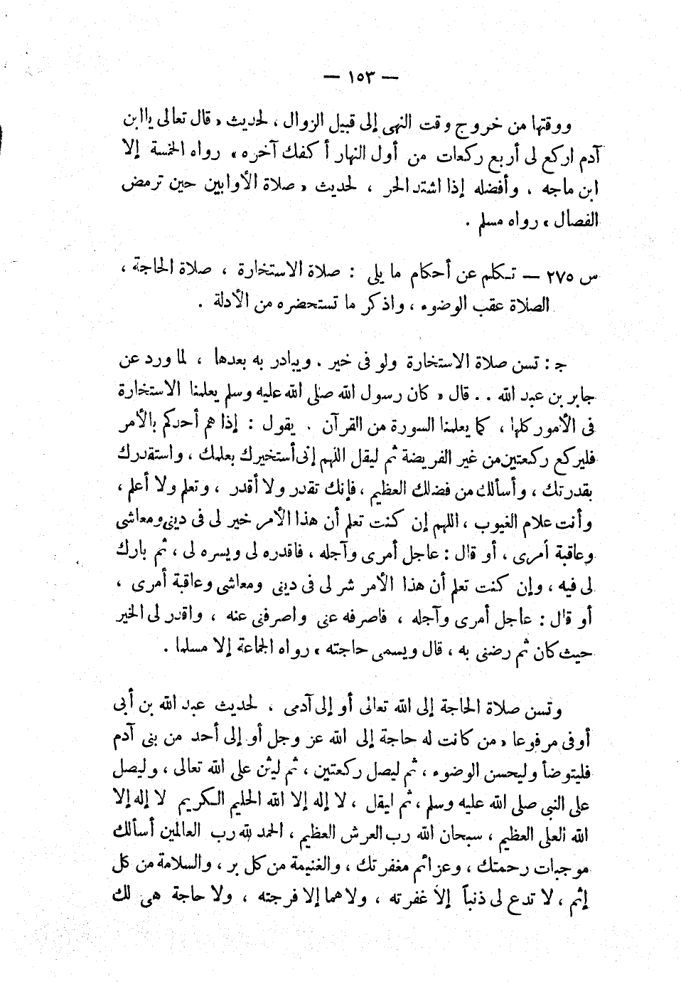 س275: تكلم عن أحكام ما يلي: صلاة الاستخارة، صلاة الحاجة، الصلاة عقب الوضوء، واذكر ما تستحضره من الأدلة.