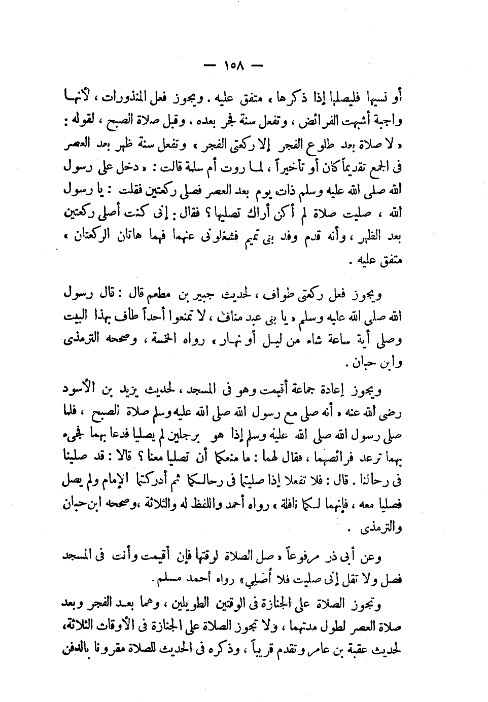 أو نسيها فليصلها إذا ذكرها» متفق عليه، ويجوز فعل المنذورات؛ لأنها واجبة أشبهت الفرائض، وتفعل سُّنة فجر بعده، وقيل: صلاة الصبح، لقوله: «لا صلاة بعد طلوع الفجر إلا ركعتي الفجر» ، وتفعل سُّنة ظهر بعد العصر في الجمع تقديمًا كان أو تأخيرًا، لما روت أم سلمة قالت: «دخل عليّ رسول الله صلى الله عليه وسلم ذات يوم بعد العصر فصلى ركعتين، فقلت: يا رسول الله، صليت صلاة لم أكن أراك تصليها؟ فقال: «إني كنت أصلي ركعتين بعد الظهر، وأنه قدم وفد بني تميم فشغلوني عنهما فهما هاتان الركعتان» » متفق عليه.