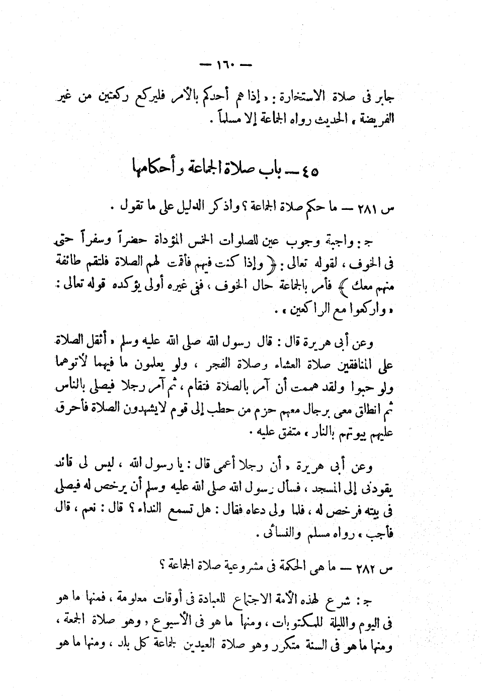 س281: ما حكم صلاة الجماعة؟ واذكر الدليل على ما تقول.