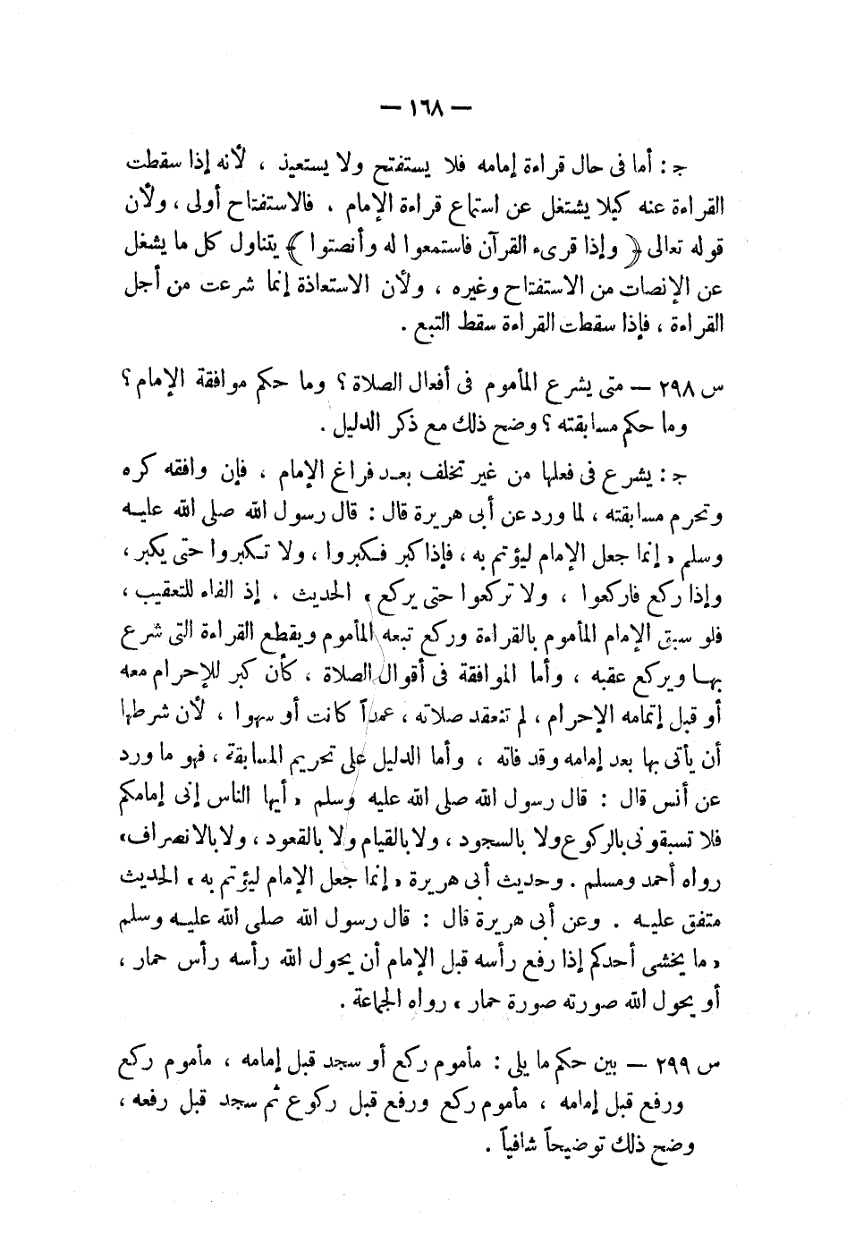 س299: بين حكم ما يلي: مأموم ركع أو سجد قبل إمامه، مأموم ركع ورفع قبل إمامه، مأموم ركع ورفع قبل ركوع ثم سجد قبل رفعه، وضح ذلك توضيحًا شافيًا.