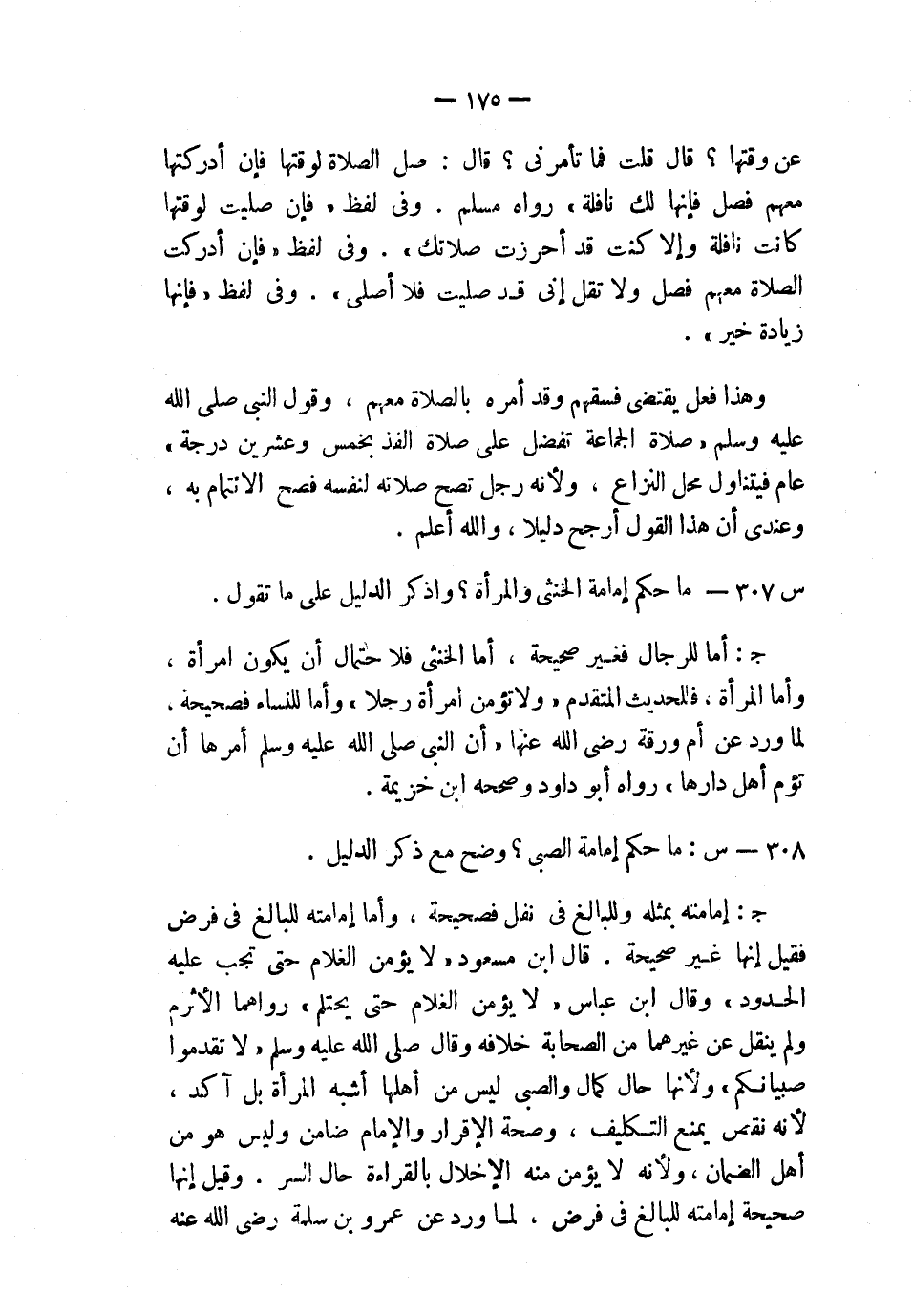 س307: ما حكم إمامة الخنثى والمرأة؟ واذكر الدليل على ما تقول.