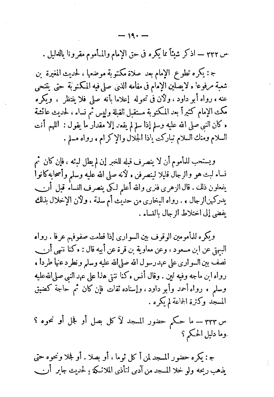 س332: اذكر شيئًا مما يكره في حق الإمام والمأموم مقرونًا بالدليل.