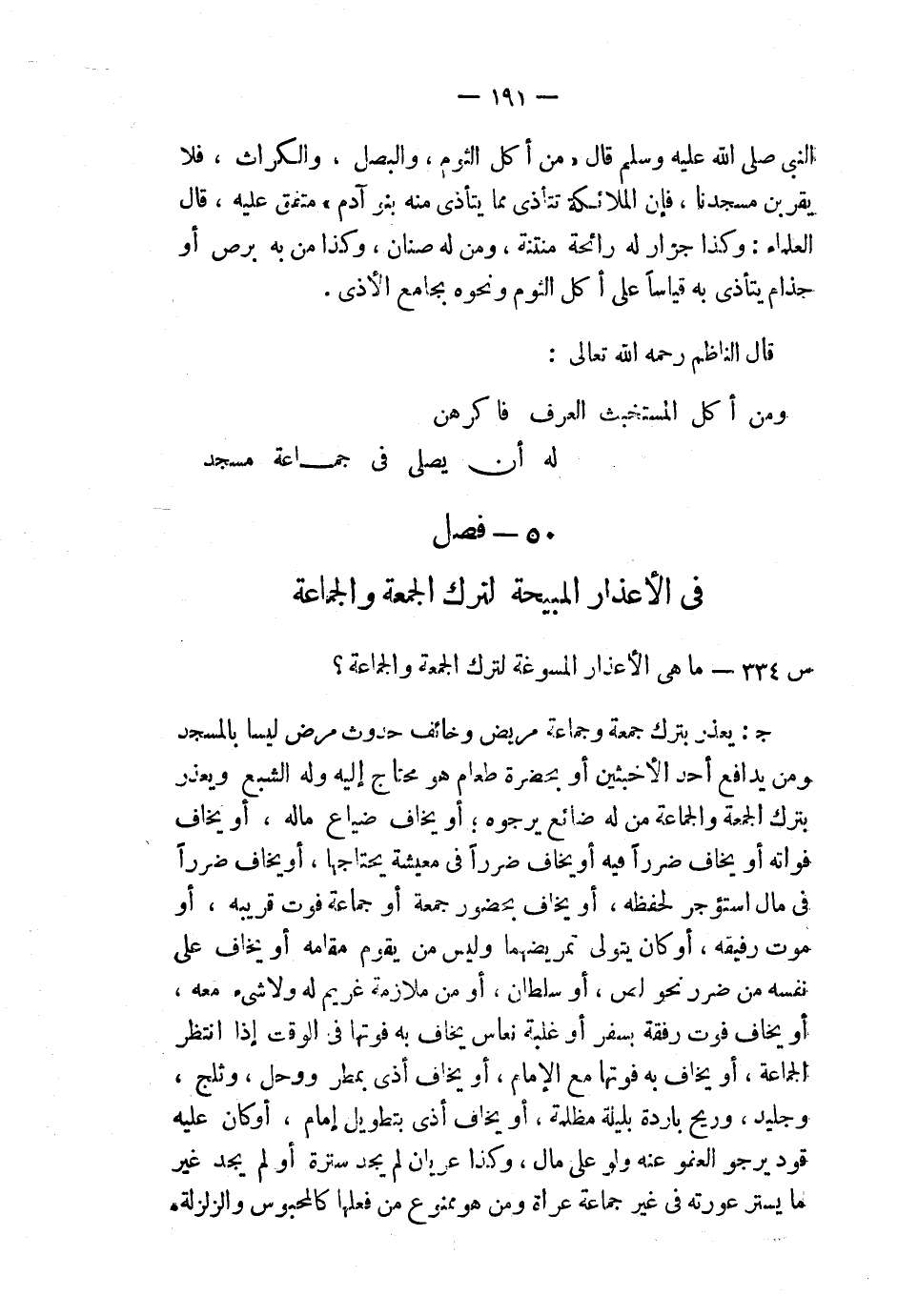 50- فصل في الأعذار المبيحة لترك الجمعة والجماعة