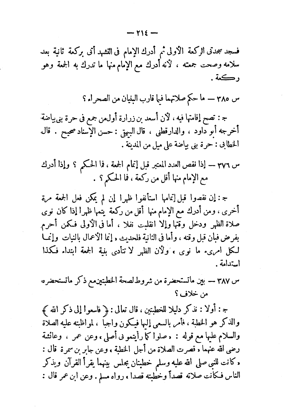 س386: إذا نقص العدد المعتبر قبل إتمام الجمعة، فما الحكم؟ وإذا أدرك مع الإمام منها أقل من ركعة، فما الحكم؟