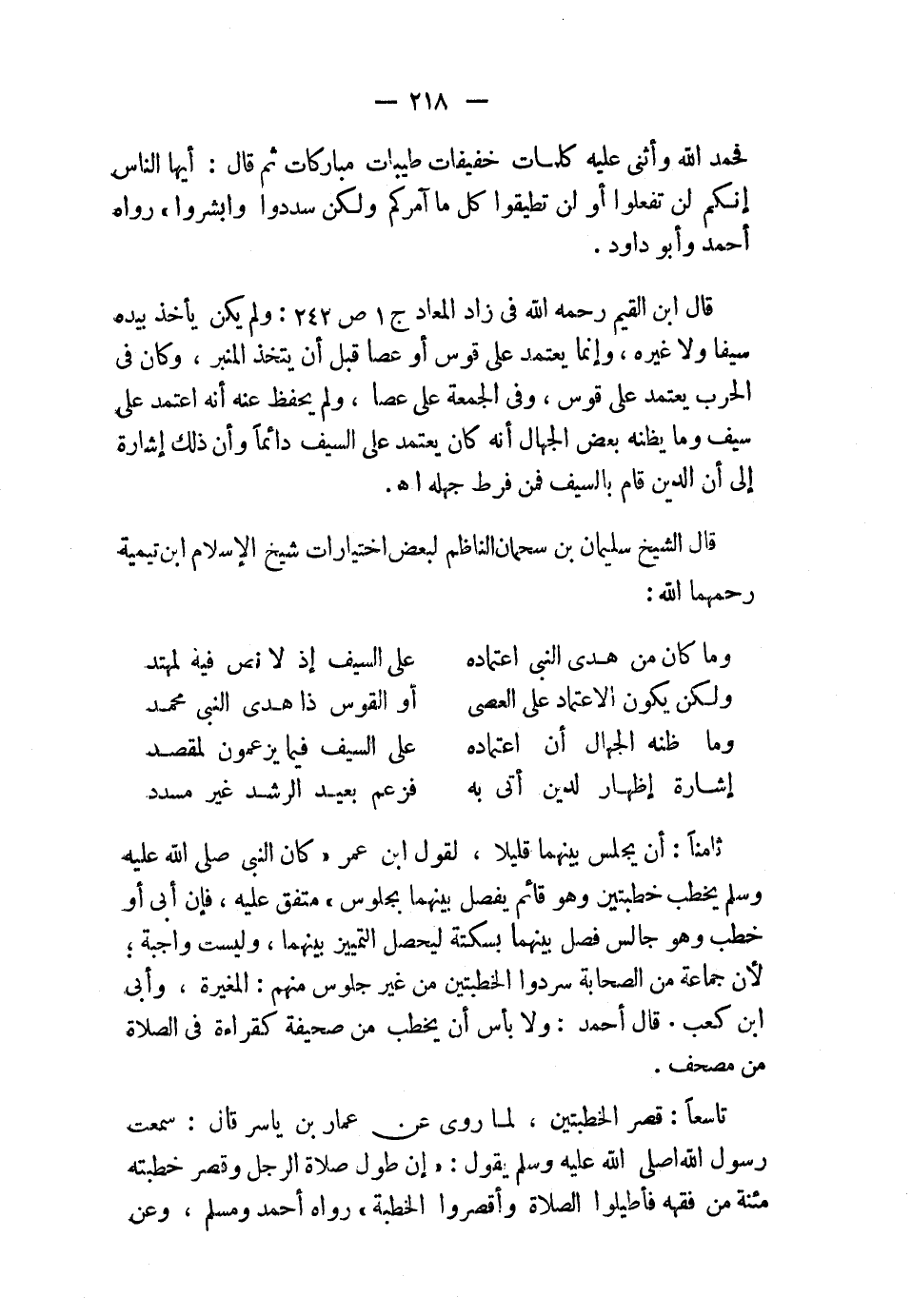 قال الشيخ سليمان بن سحمان الناظم لبعض اختيارات شيخ الإسلام ابن تيمية –رحمهما الله-: