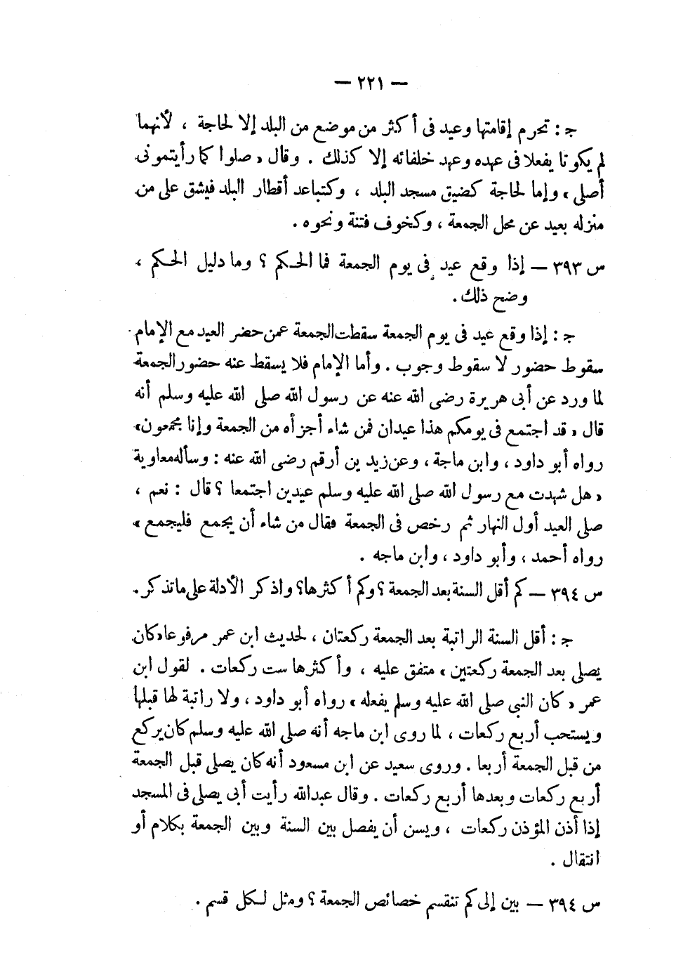 س393: إذا وقع عيد في يوم الجمعة فما الحكم؟ وما دليل الحكم؟ وضح ذلك