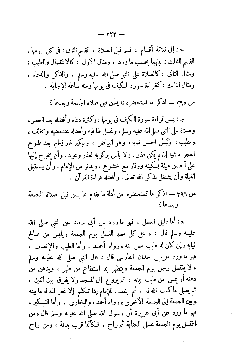 س396: اذكر ما تستحضره مما يُسن قبل صلاة الجمعة وبعدها؟