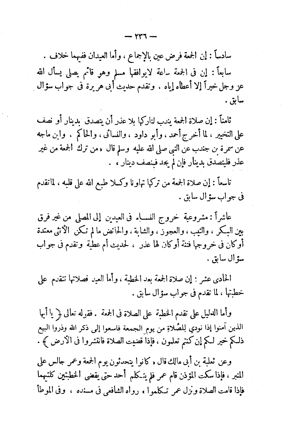 سادسًا: إن الجمعة فرض عين بالإجماع، وأما العيدان ففيهما خلاف.