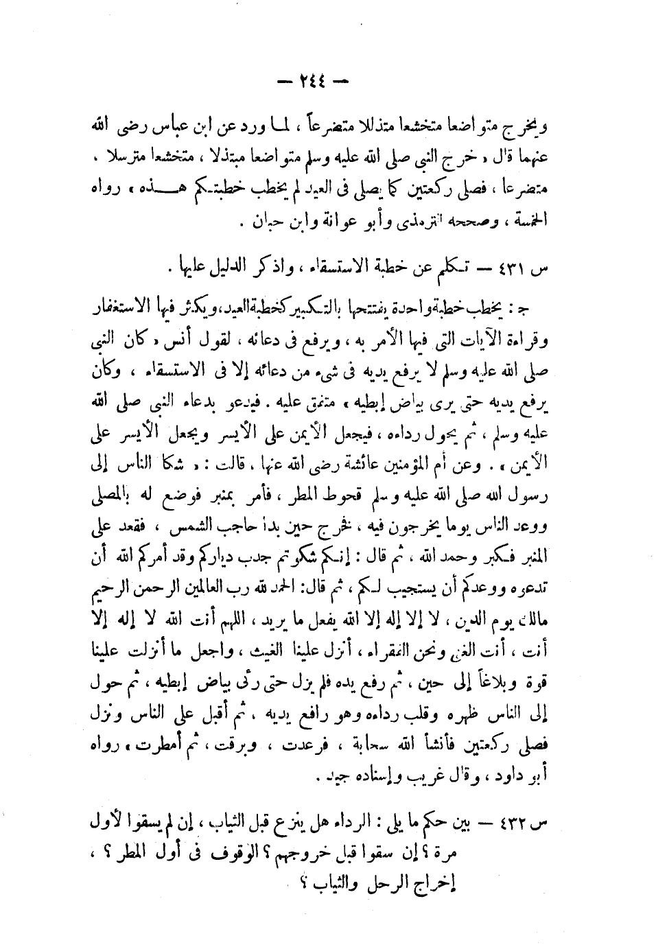 س433: تكلم عن خطبة الاستسقاء، واذكر الدليل عليها.