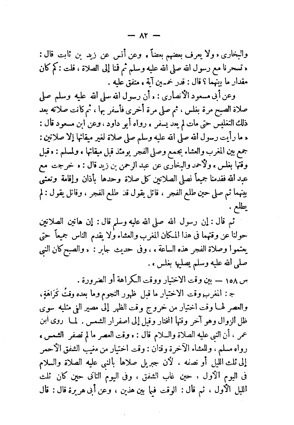 س158: بين وقت الاختيار ووقت الكراهة أو الضرورة.