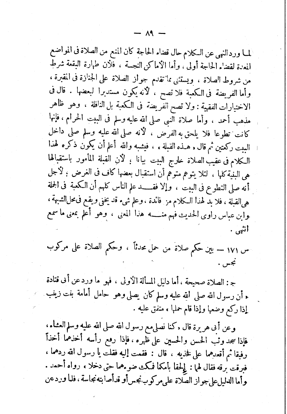س171: ما حكم صلاة من حمل محدثًا، وحكم الصلاة على مركوب نجس.