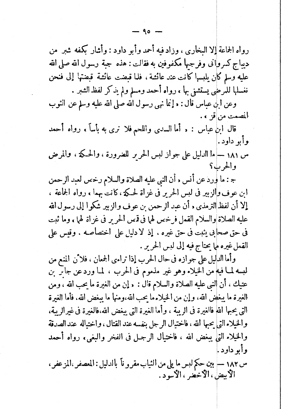 س181: ما الدليل على جواز لبس الحرير للضورة، والحكة، والمرض والحرب؟