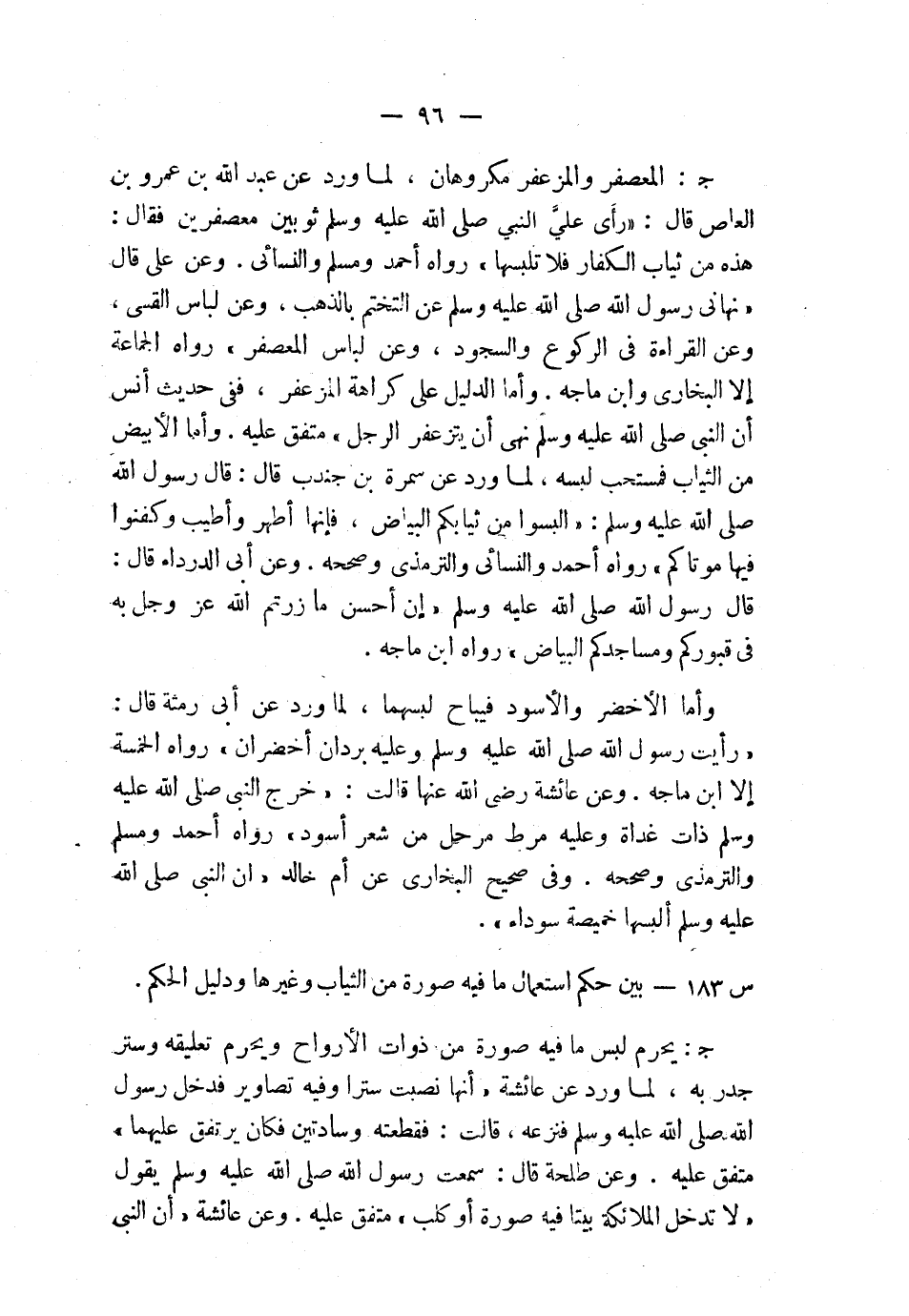 س183: بين حكم استعمال ما فيه صورة من الثياب وغيرها ودليل الحكم.