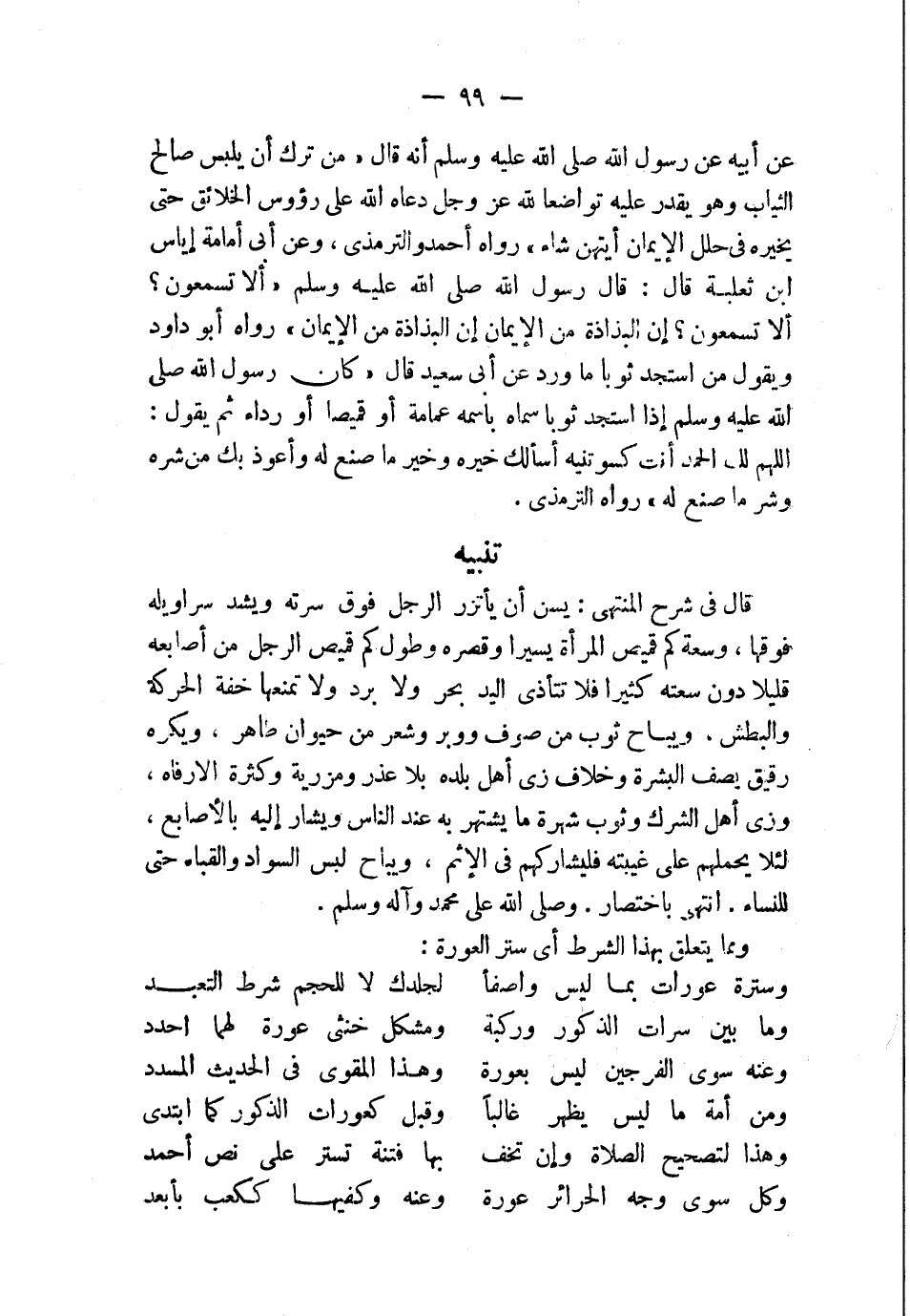 ومن أمة ما ليس يظهر غالبًا ... وقبل كعورات الذكور كما ابتدى