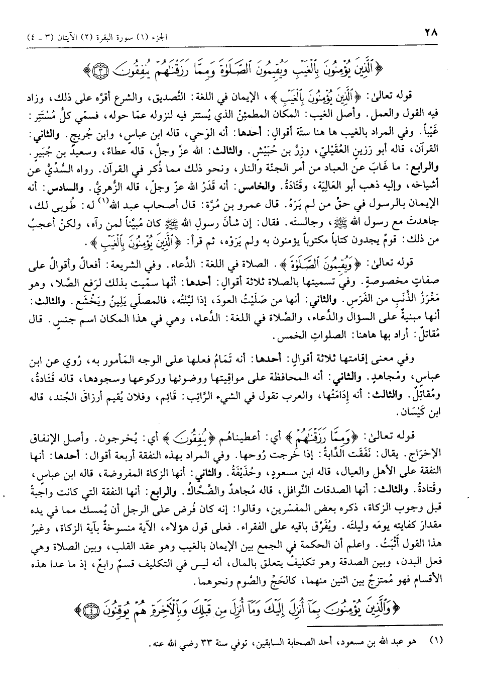 (1) هو عبد الله بن مسعود، أحد الصحابة السابقين، توفي سنة 33 رضي الله عنه.