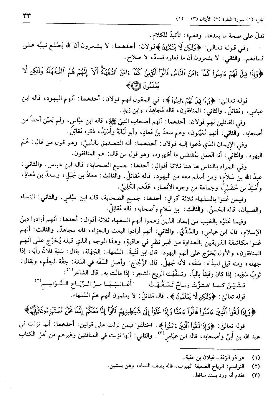 وَإِذا قِيلَ لَهُمْ آمِنُوا كَما آمَنَ النَّاسُ قالُوا أَنُؤْمِنُ كَما آمَنَ السُّفَهاءُ أَلا إِنَّهُمْ هُمُ السُّفَهاءُ وَلكِنْ لا يَعْلَمُونَ (13)