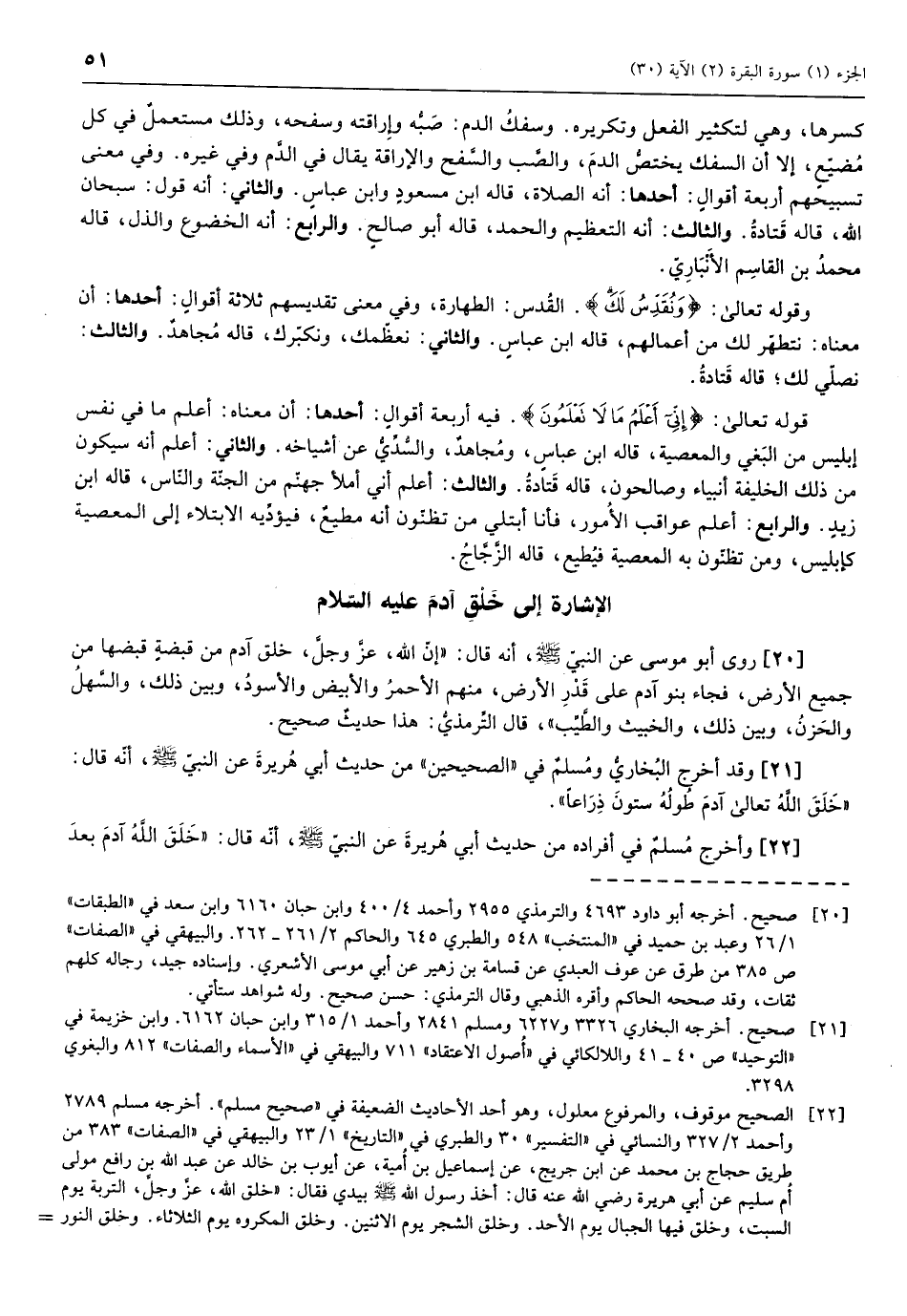 (22) وأخرج مسلم في أفراده من حديث أبي هريرة عن النبيّ صلّى الله عليه وسلّم، أنّه قال: «خلق الله آدم بعد