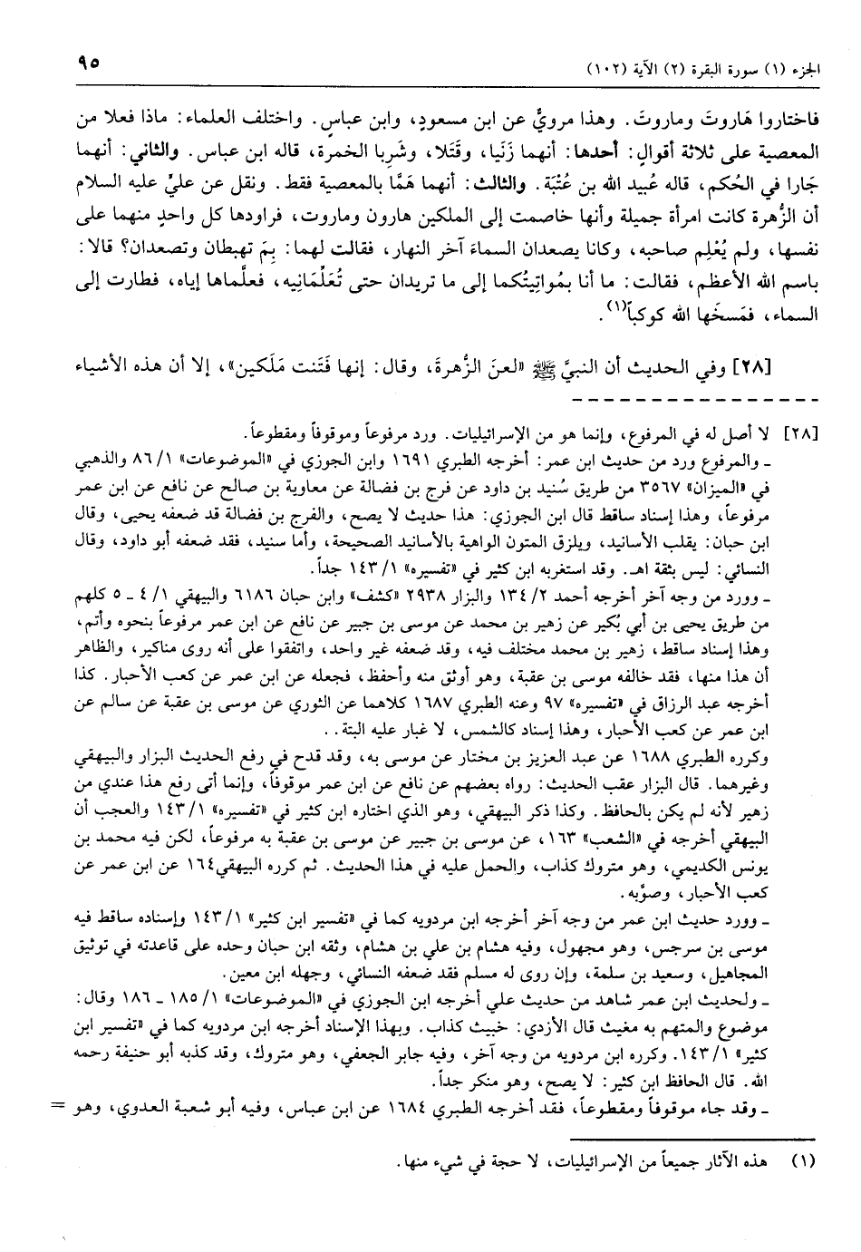 (28) وفي الحديث أن النبيّ صلّى الله عليه وسلّم «لعن الزهرة، وقال: إنها فتنت ملَكين» ، إلا أن هذه الأشياء