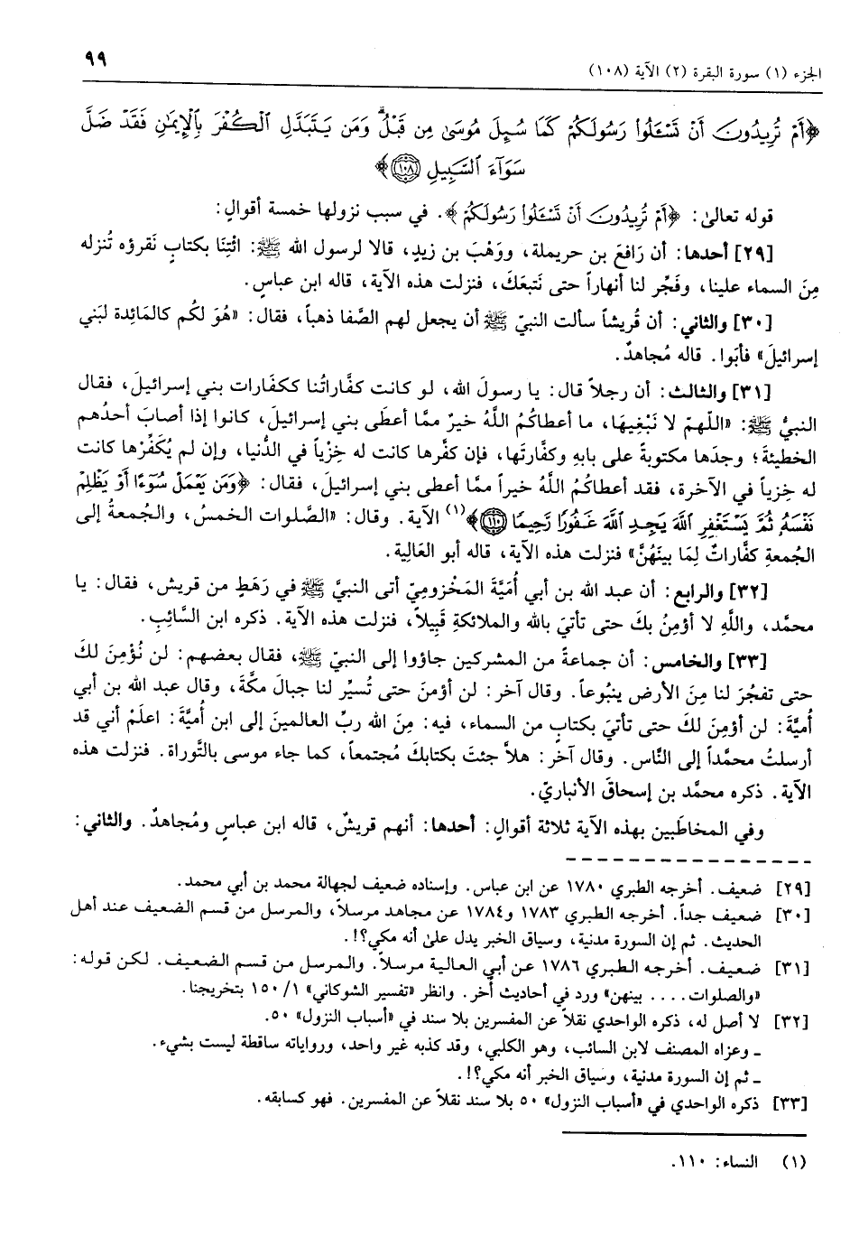 قوله تعالى: أَمْ تُرِيدُونَ أَنْ تَسْئَلُوا رَسُولَكُمْ. في سبب نزولها خمسة أقوال: