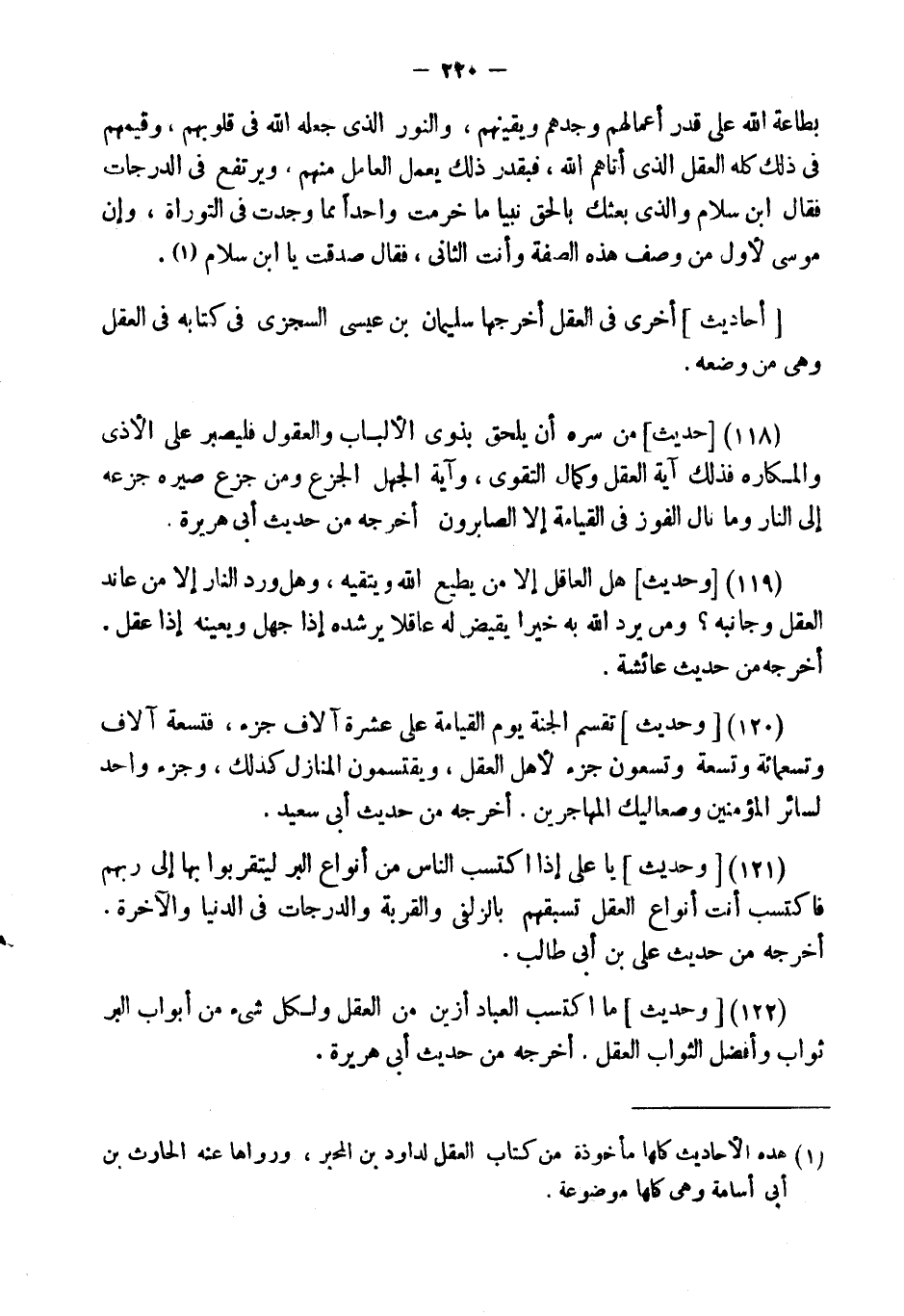 (122) [وَحَدِيثٌ] " مَا اكْتَسَبَ الْعِبَادُ أَزْيَنَ من الْعقل وَلكُل شئ مِنْ أَبْوَابِ الْبِرِّ ثَوَابٌ وَأَفْضَلُ الثَّوَابِ الْعَقْلُ ". أخرجه من حَدِيث أَبى هُرَيْرَة.