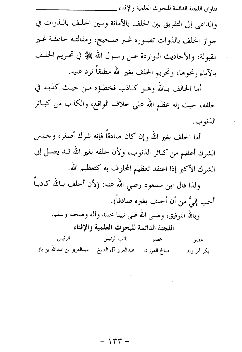 ولذا قال ابن مسعود رضي الله عنه: (لأن أحلف بالله كاذبا أحب إلي من أن أحلف بغيره صادقا) .