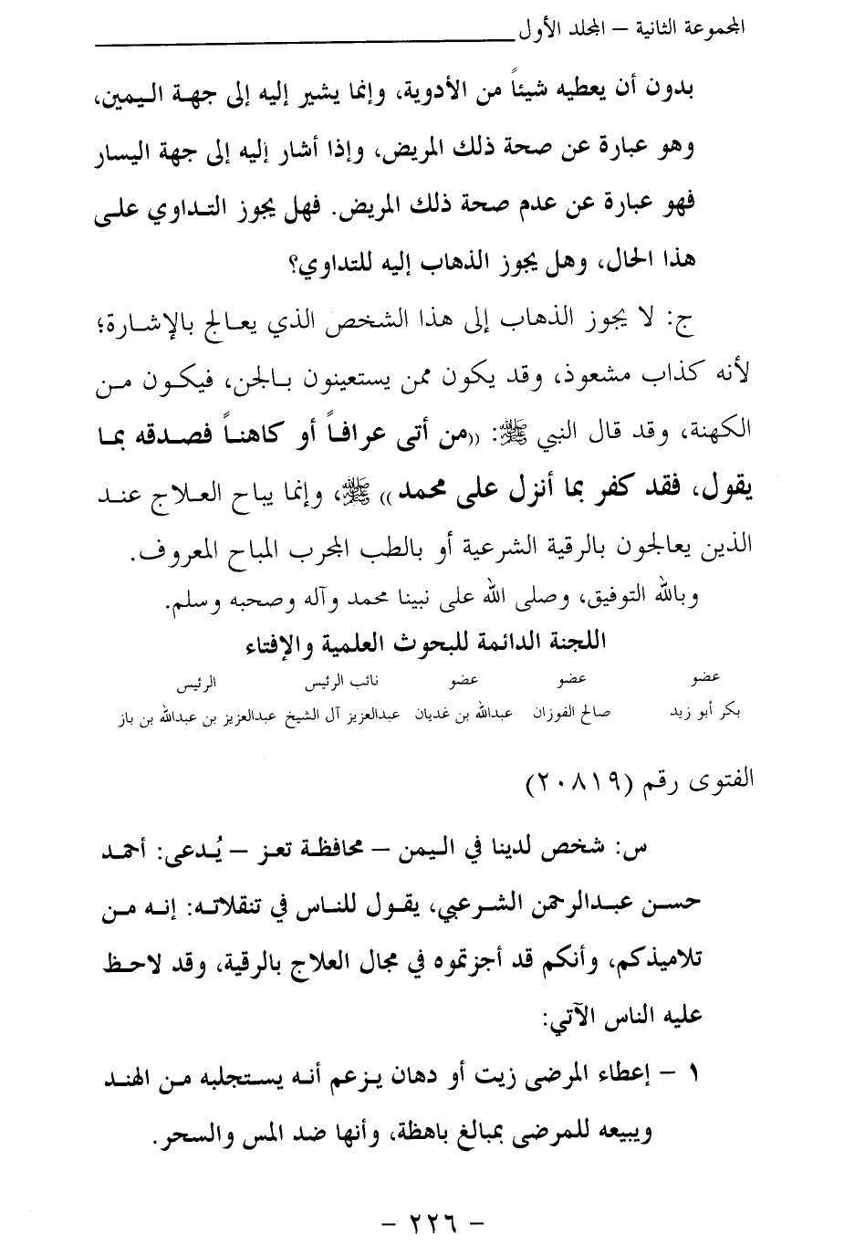 بكر أبو زيد ... صالح الفوزان ... عبد الله بن غديان ... عبد العزيز آل الشيخ ... عبد العزيز بن عبد الله بن باز