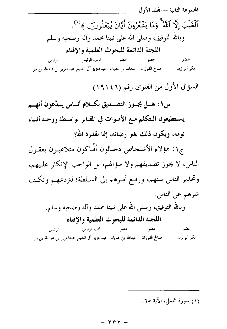 بكر أبو زيد ... صالح الفوزان ... عبد الله بن غديان ... عبد العزيز آل الشيخ ... عبد العزيز بن عبد الله بن باز