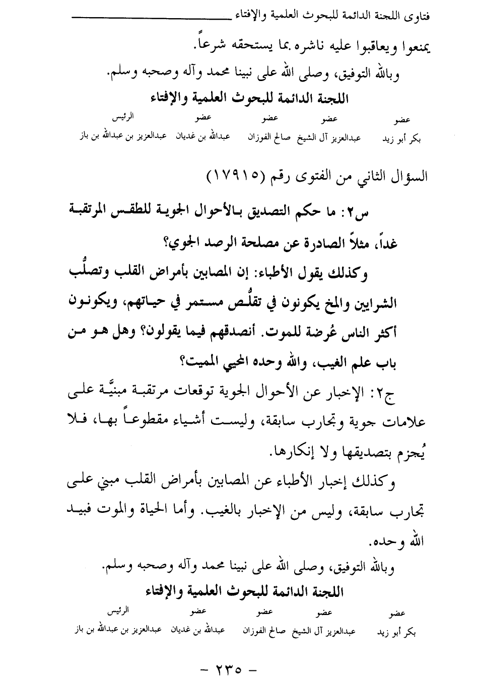 بكر أبو زيد ... عبد العزيز آل الشيخ ... صالح الفوزان ... عبد الله بن غديان ... عبد العزيز بن عبد الله بن باز