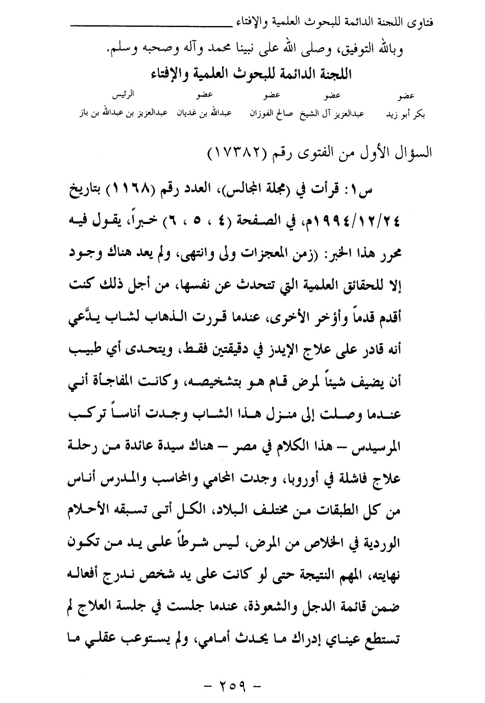 بكر أبو زيد ... عبد العزيز آل الشيخ ... صالح الفوزان ... عبد الله بن غديان ... عبد العزيز بن عبد الله بن باز