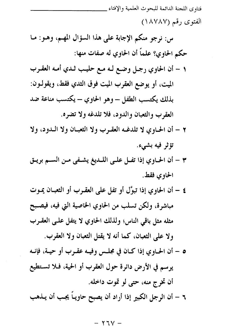3- أن الحاوي إذا تفل على اللديغ يشفى من السم بريق الحاوي فقط.