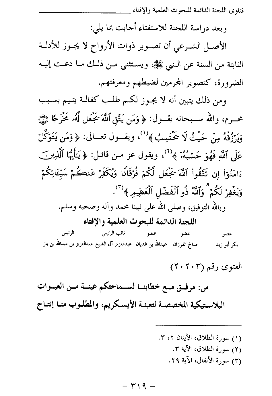 وبعد دراسة اللجنة للاستفتاء أجابت بما يلي: