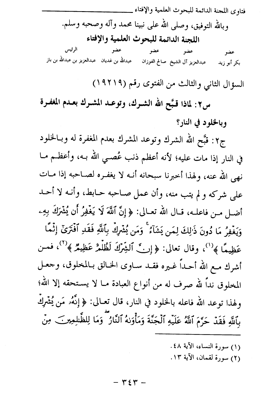 بكر أبو زيد ... عبد العزيز آل الشيخ ... صالح الفوزان ... عبد الله بن غديان ... عبد العزيز بن عبد الله بن باز