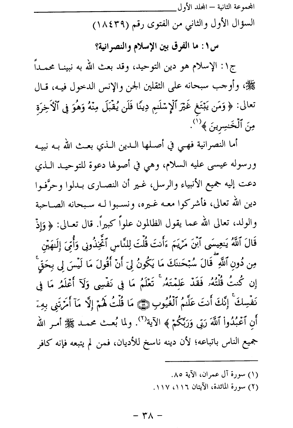 س 1: ما الفرق بين الإسلام والنصرانية؟