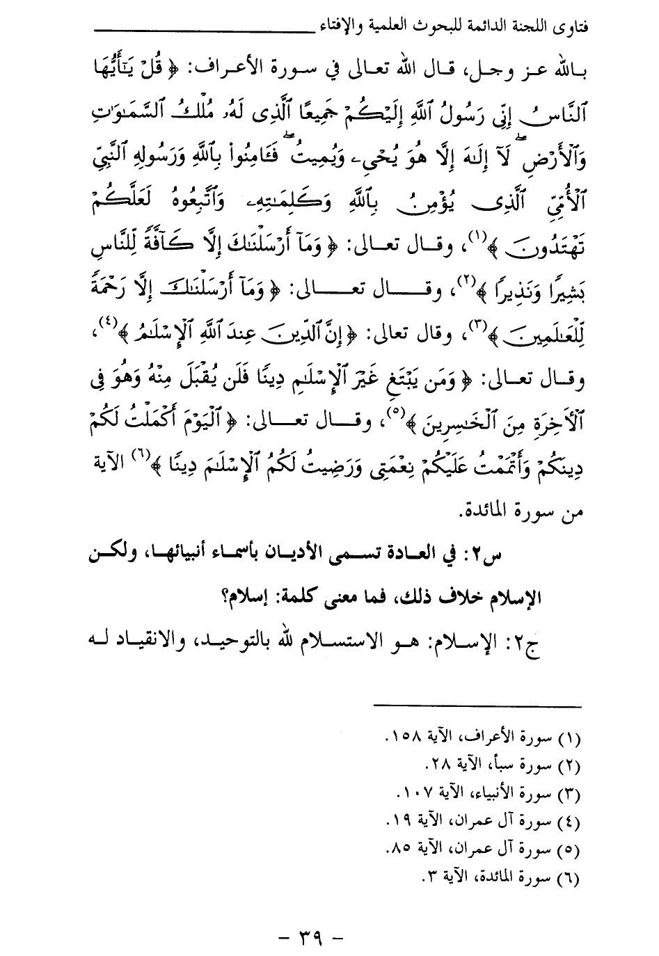 ج 2: الإسلام: هو الاستسلام لله بالتوحيد، والانقياد له