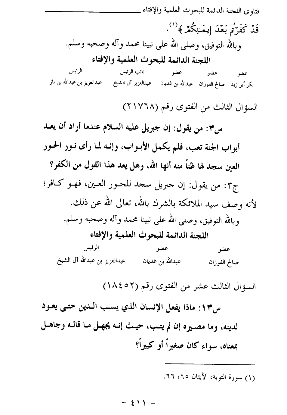 بكر أبو زيد ... صالح الفوزان ... عبد الله بن غديان ... عبد العزيز آل الشيخ ... عبد العزيز بن عبد الله بن باز