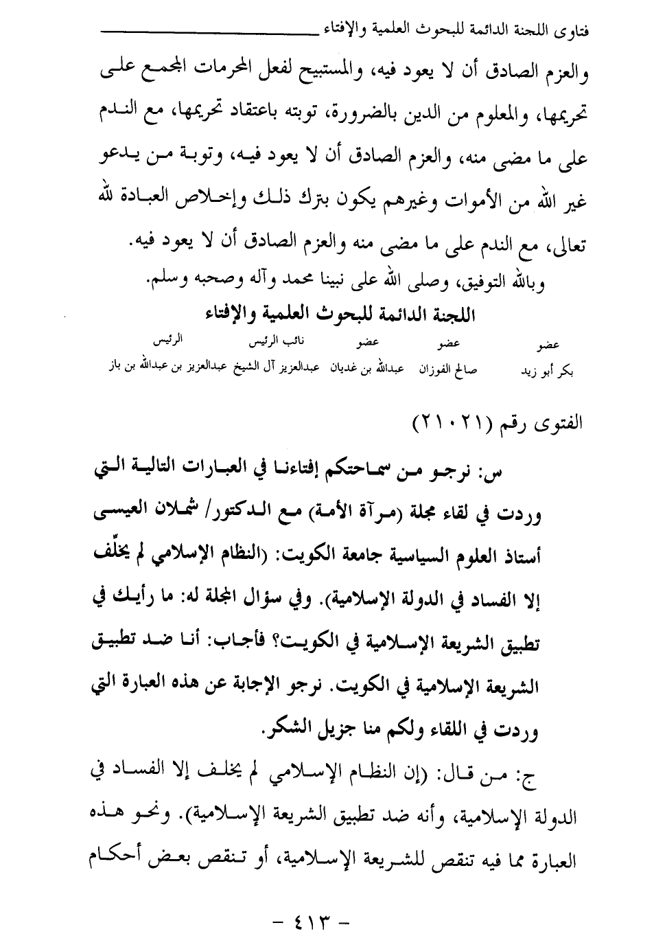 بكر أبو زيد ... صالح الفوزان ... عبد الله بن غديان ... عبد العزيز آل الشيخ ... عبد العزيز بن عبد الله بن باز