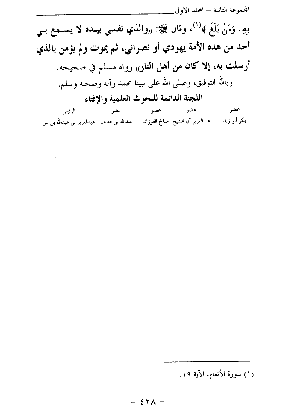 بكر أبو زيد ... عبد العزيز آل الشيخ ... صالح الفوزان ... عبد الله بن غديان ... عبد العزيز بن عبد الله بن باز