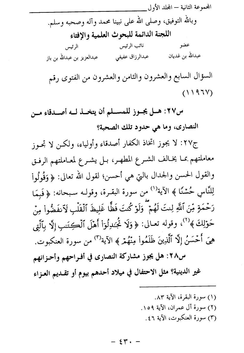 س 27: هل يجوز للمسلم أن يتخذ له أصدقاء من النصارى، وما هي حدود تلك الصحبة؟