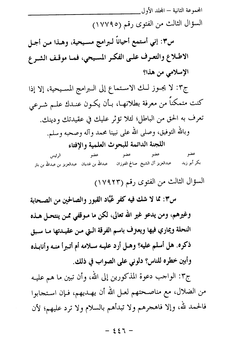 بكر أبو زيد ... عبد العزيز آل الشيخ ... صالح الفوزان ... عبد الله بن غديان ... عبد العزيز بن عبد الله بن باز