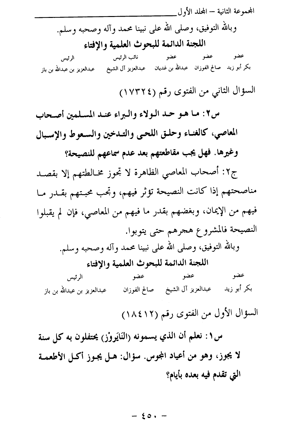 بكر أبو زيد ... صالح الفوزان ... عبد الله بن غديان ... عبد العزيز آل الشيخ ... عبد العزيز بن عبد الله بن باز