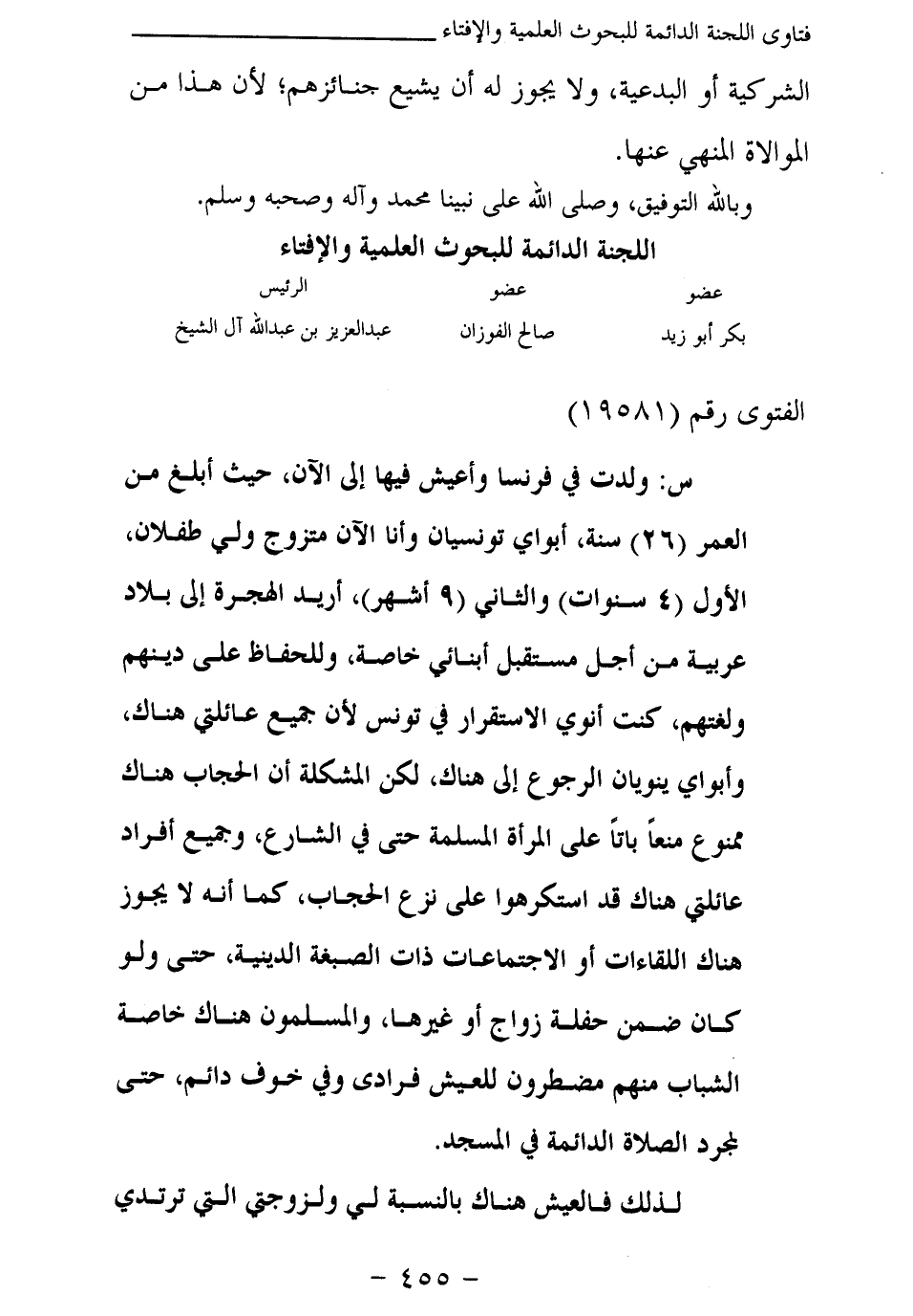 س: ولدت في فرنسا وأعيش فيها إلى الآن، حيث أبلغ من العمر (26) سنة، أبواي تونسيان وأنا الآن متزوج ولي طفلان، الأول (4 سنوات) والثاني (9 أشهر) ، أريد الهجرة إلى بلاد عربية من أجل مستقبل أبنائي خاصة، وللحفظ على دينهم ولغتهم، كنت أنوي الاستقرار في تونس لأن جميع عائلتي هناك، وأبواي ينويان الرجوع إلى هناك، لكن المشكلة أن الحجاب هناك ممنوع منعا باتا على المرأة المسلمة حتى في الشارع، وجميع أفراد عائلتي هناك قد استكرهوا على نزع الحجاب، كما أنه لا يجوز هناك اللقاءات أو الاجتماعات ذات الصبغة الدينية، حتى ولو كان ضمن حفلة زواج أو غيرها، والمسلمون هناك خاصة الشباب منهم مضطرون للعيش فرادى وفي خوف دائم، حتى لمجرد الصلاة الدائمة في المسجد.