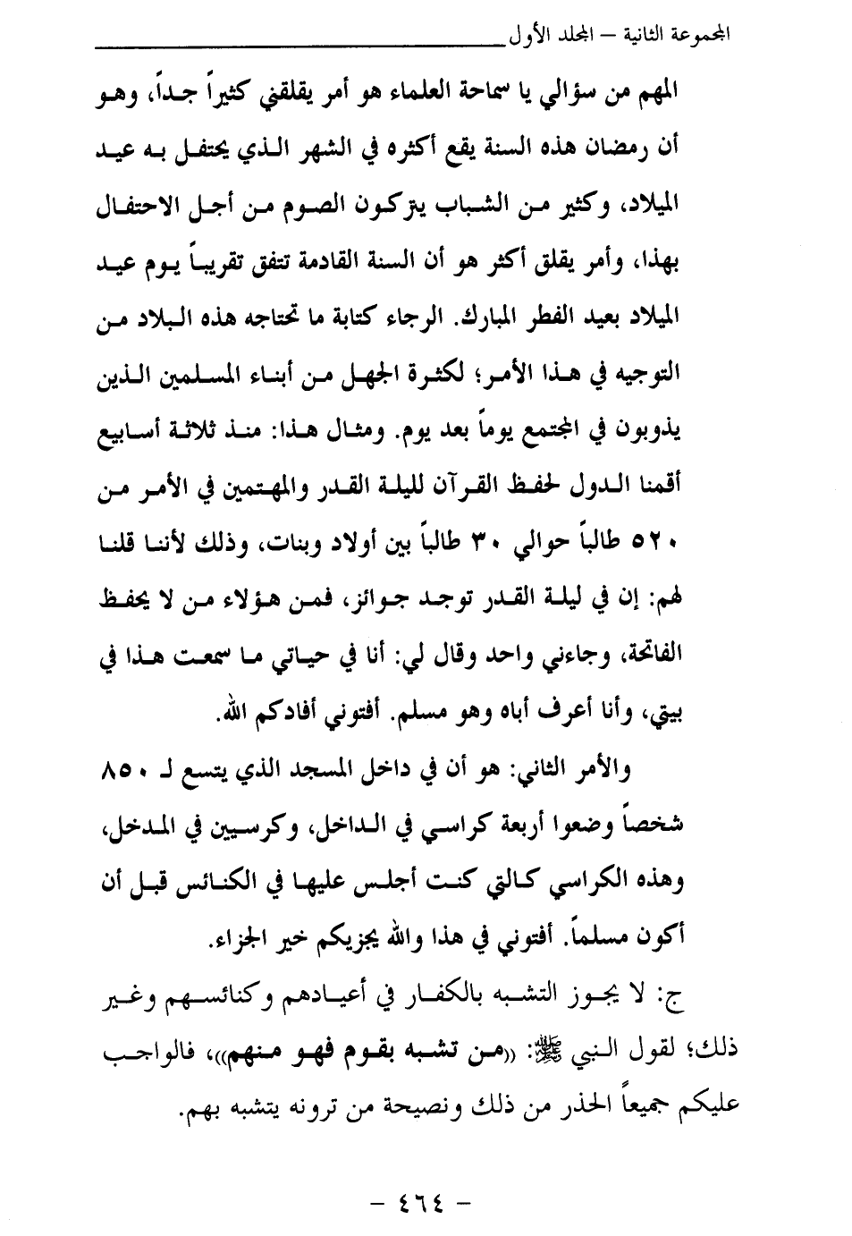 المهم من سؤالي يا سماحة العلماء هو أمر يقلقني كثيرا جدا، وهو أن رمضان هذه السنة يقع أكثره في الشهر الذي يحتفل به عيد الميلاد، وكثير من الشباب يتركون الصوم من أجل الاحتفال بهذا، وأمر يقلق أكثر هو أن السنة القادمة تتفق تقريبا يوم عيد الميلاد بعيد الفطر المبارك. الرجاء كتابة ما تحتاجه هذه البلاد من التوجيه في هذا الأمر، لكثرة الجهل من أبناء المسلمين الذين يذوبون في المجتمع يوما بعد يوم، ومثال هذا: منذ ثلاثة أسابيع أقمنا الدول لحفظ القران لليلة القدر والمهتمين في الأمر من 520 طالبا حوالي 30 طالبا بين أولاد وبنات، وذلك لأننا قلنا لهم: إن في ليلة القدر توجد جوائز، فمن هؤلاء من لا يحفظ الفاتحة، وجاءني واحد وقال لي: أنا في حياتي ما سمعت هذا في بيتي، وأنا أعرف أباه وهو مسلم. أفتوني أفادكم الله.