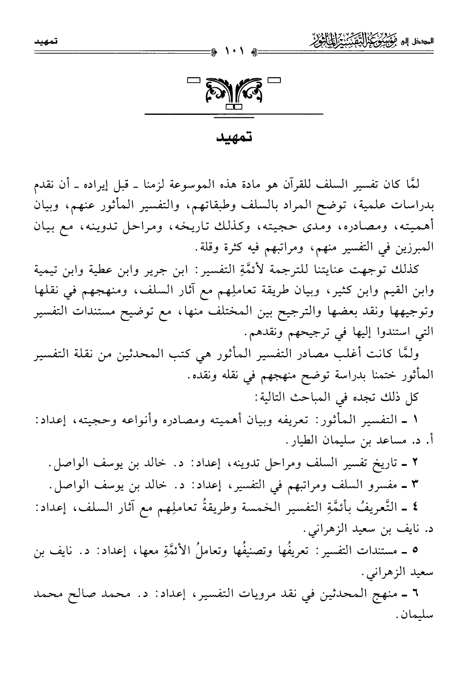 ٤ - التَّعريفُ بأئمَّةِ التفسير الخمسة وطريقةُ تعاملِهم مع آثار السلف، إعداد: د. نايف بن سعيد الزهراني.