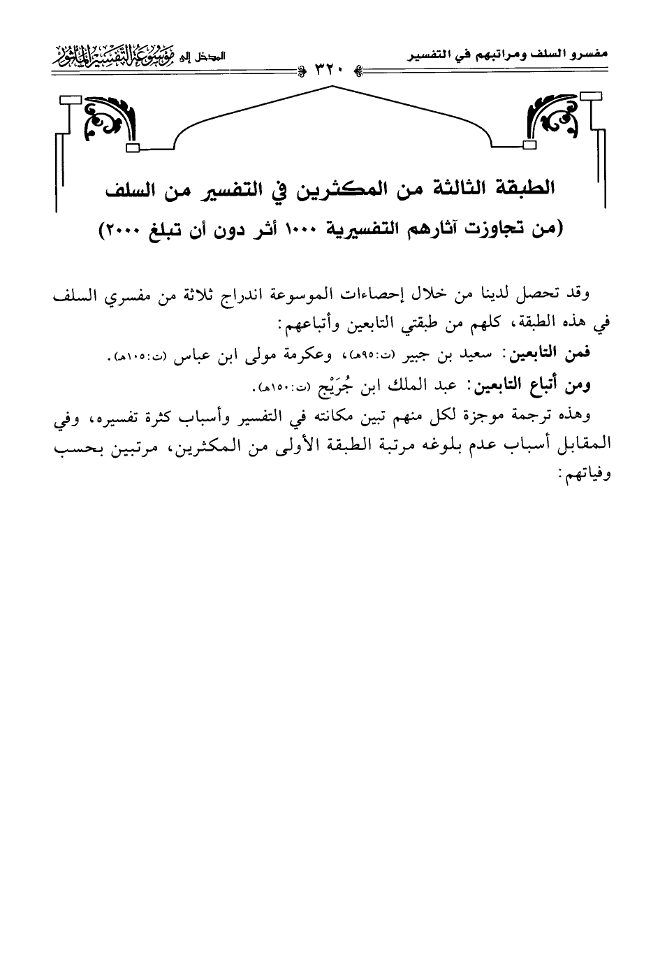 الطبقة الثالثة من المكثرين في التفسير من السلف (من تجاوزت آثارهم التفسيرية ١٠٠٠ أثر دون أن تبلغ ٢٠٠٠)