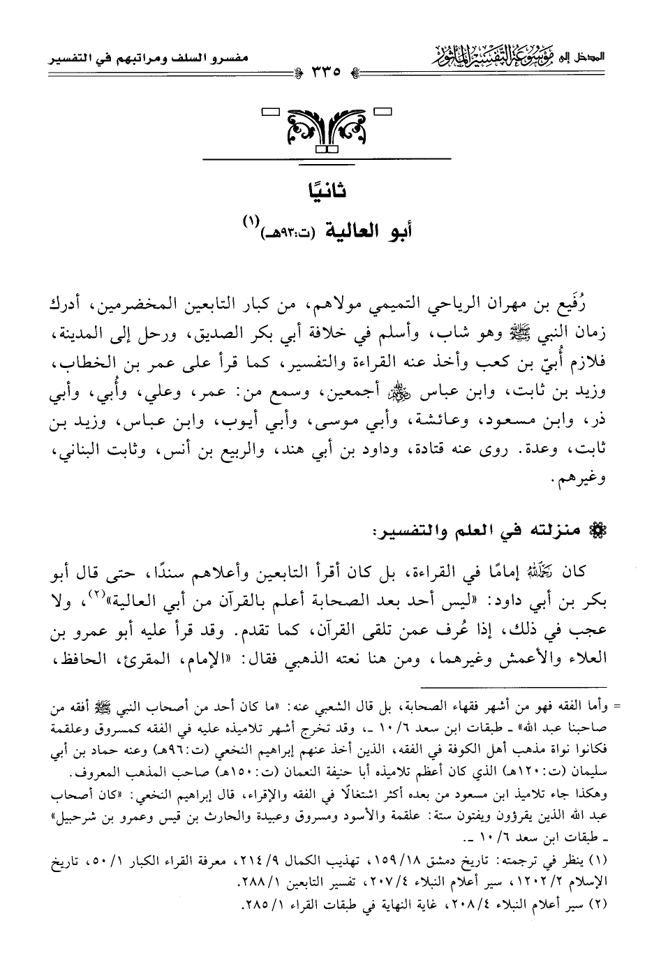 ثانيًا أبو العالية (ت: ٩٣ هـ) (¬١)