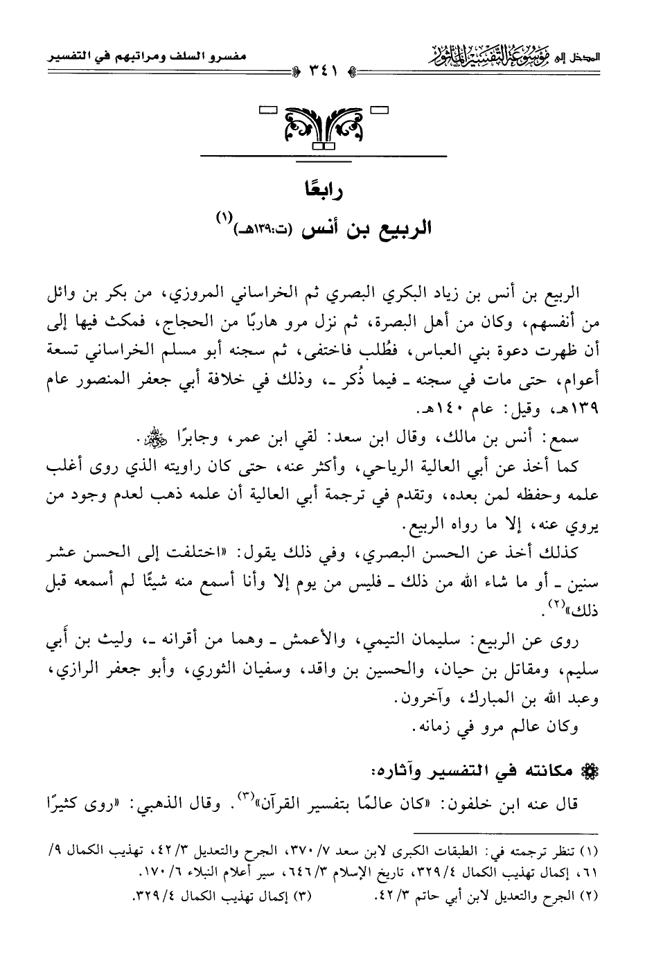 رابعًا الربيع بن أنس (ت: ١٣٩ هـ) (¬١)